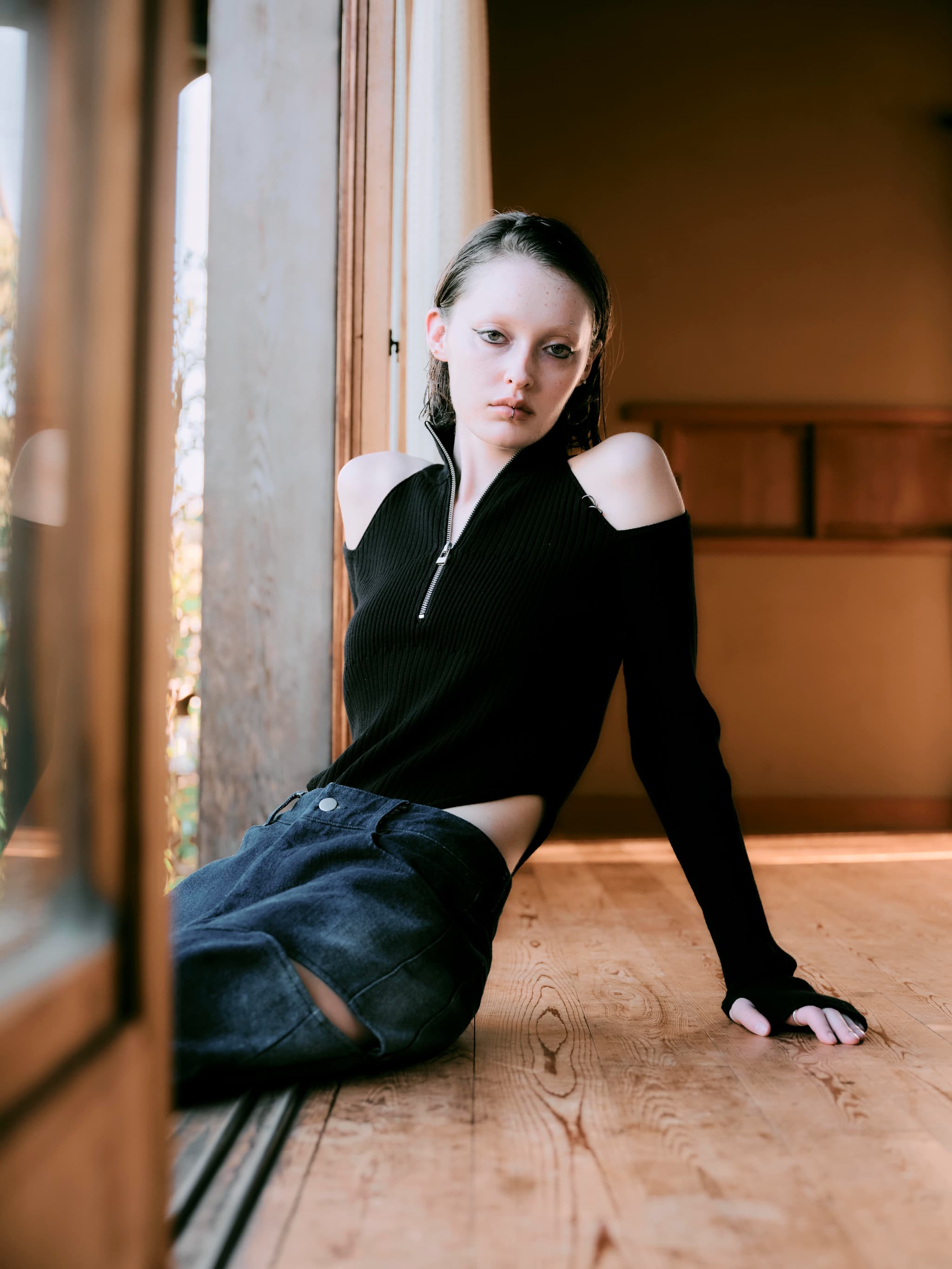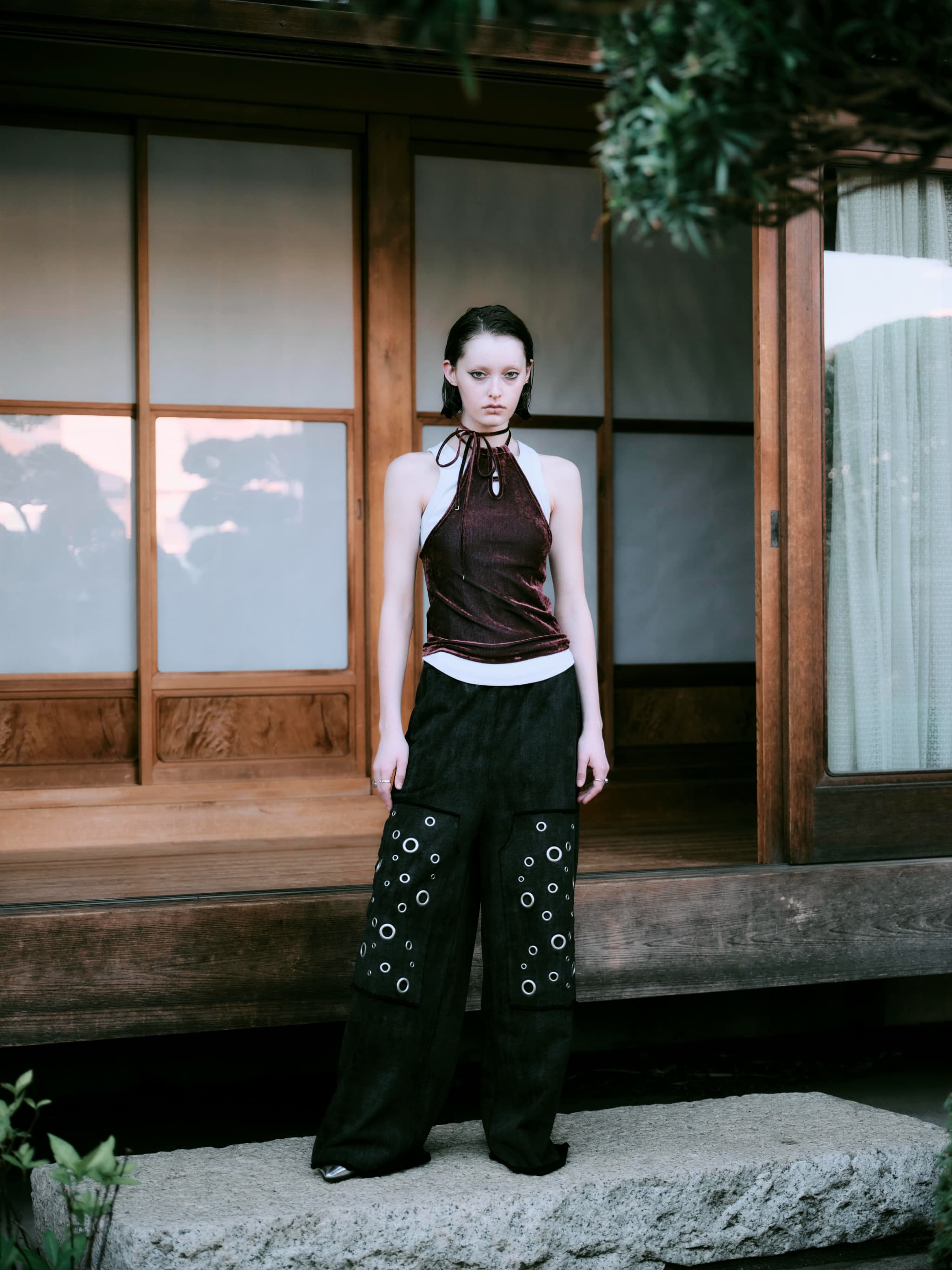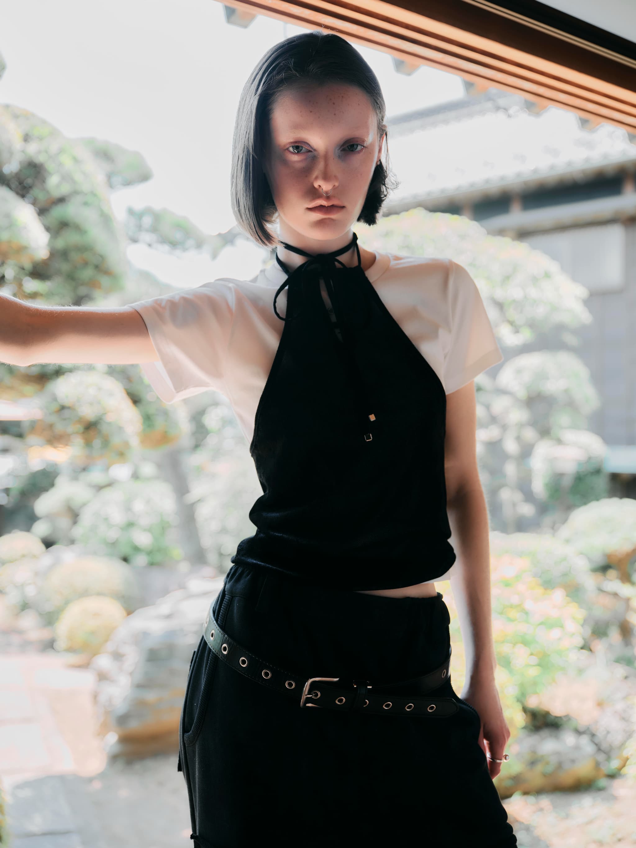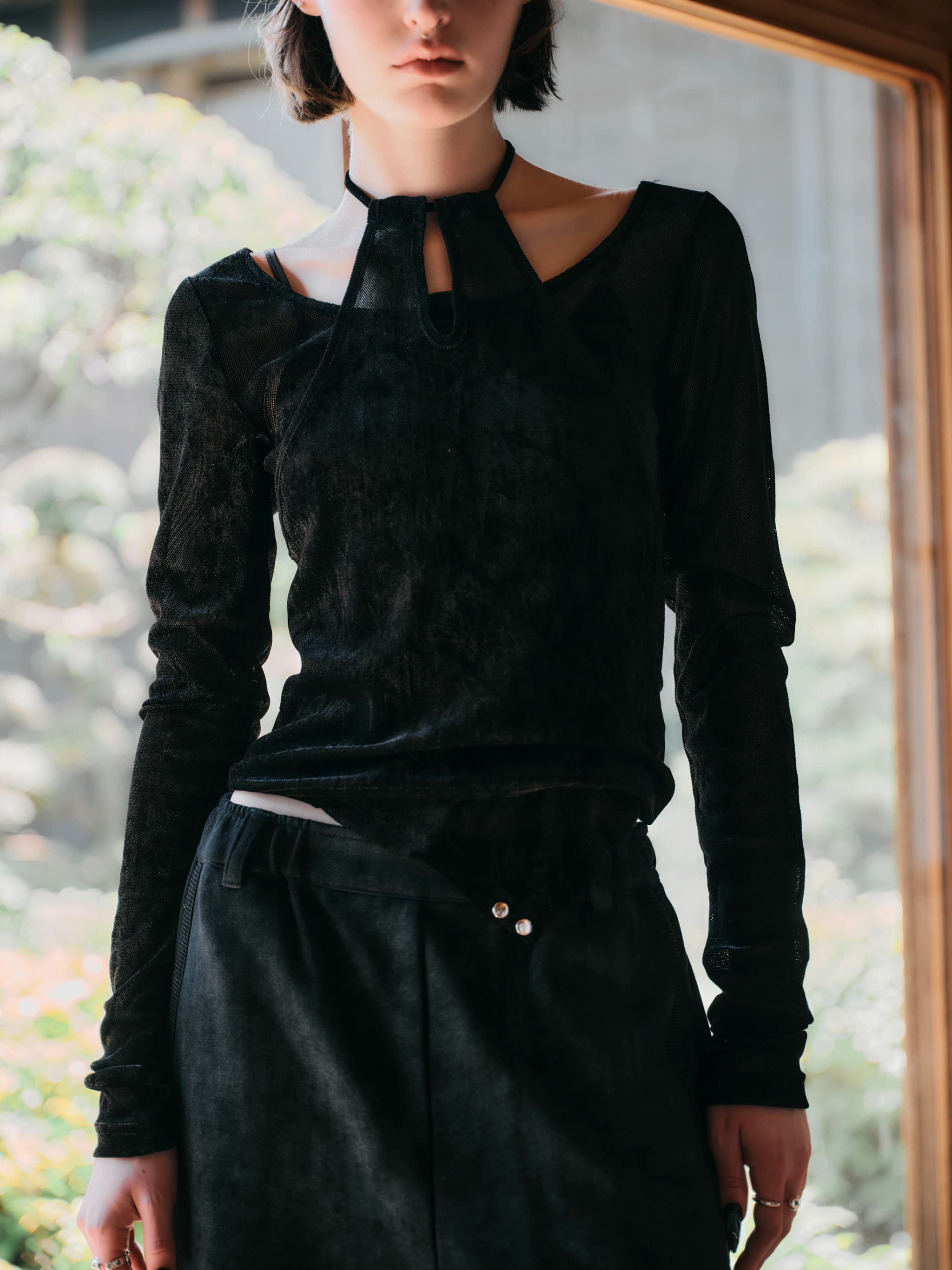 SHEER VELOUR HALTERNECK TOPS - BLACK