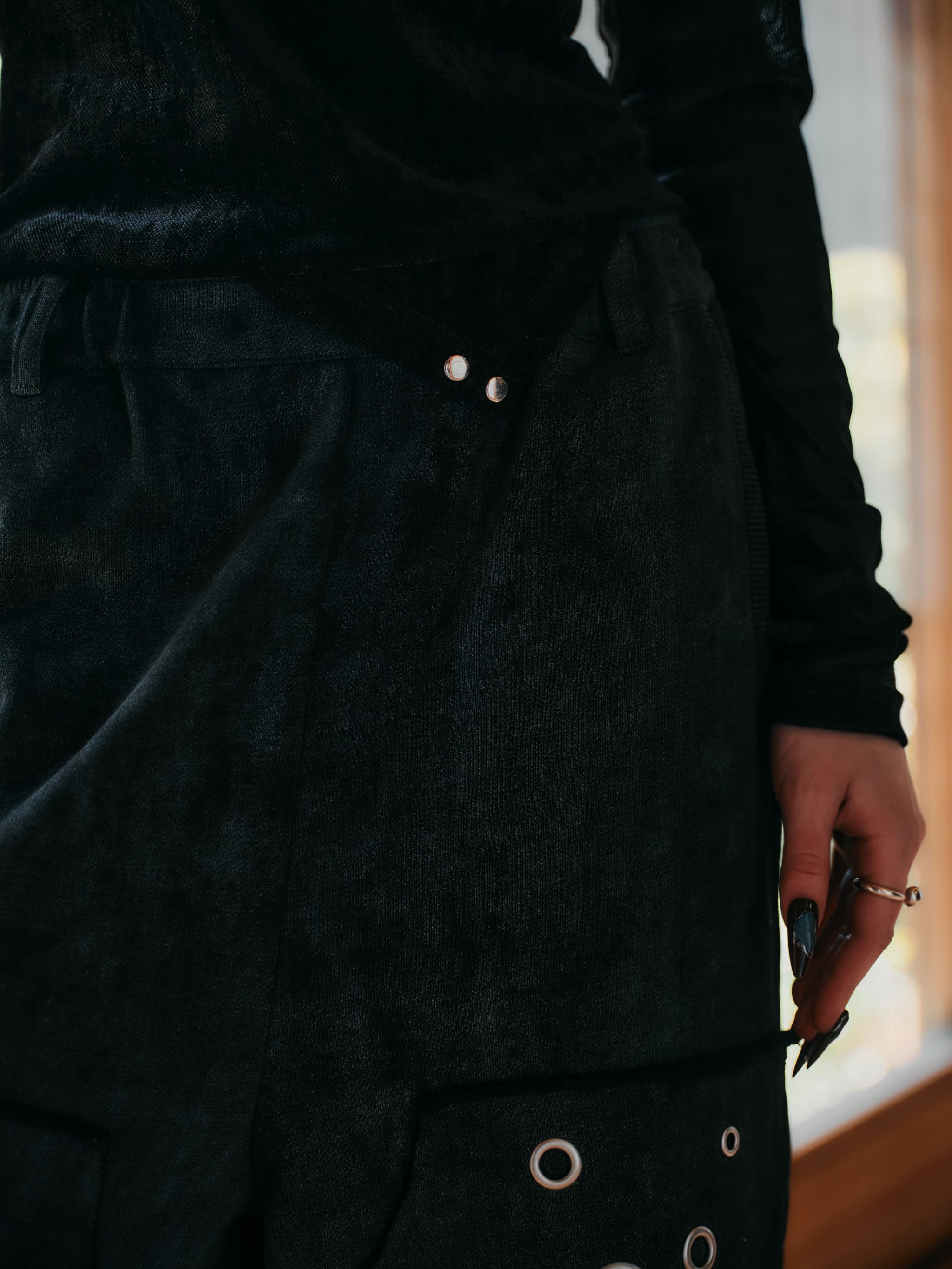 EYELET DESIGN SWEATPANTS-CHARCOAL GRAY