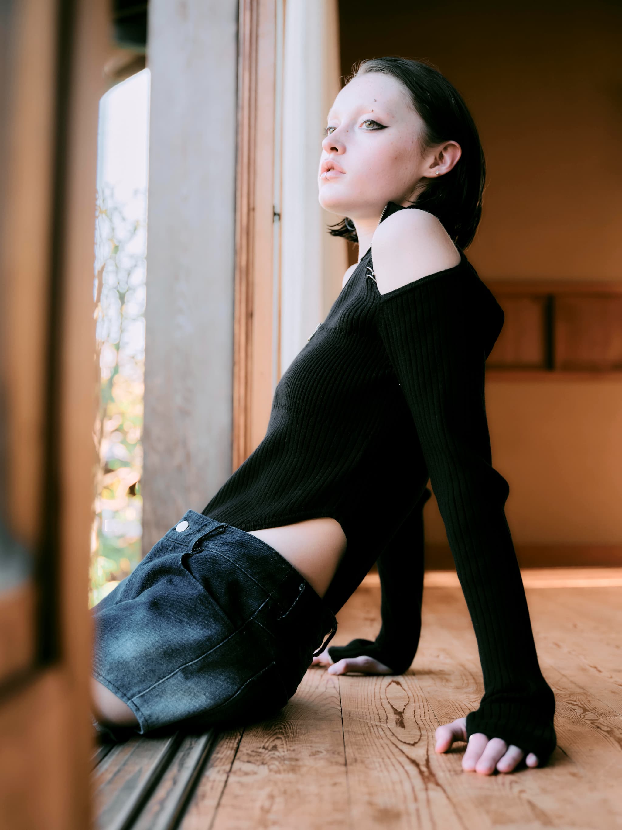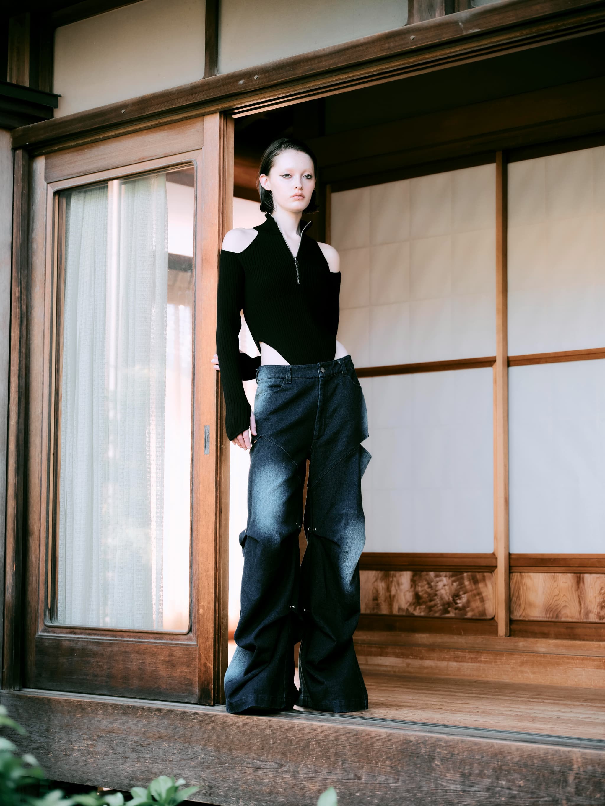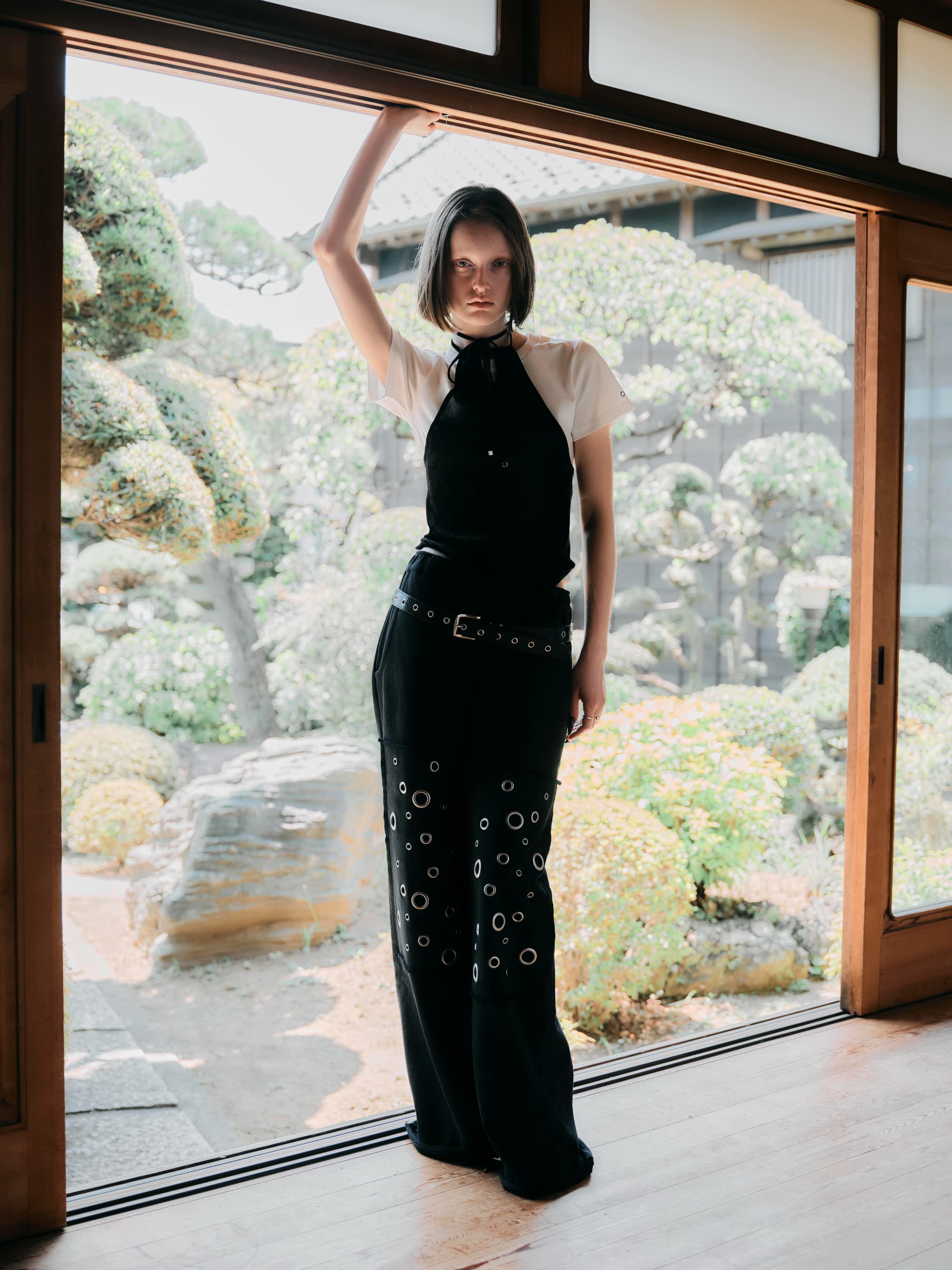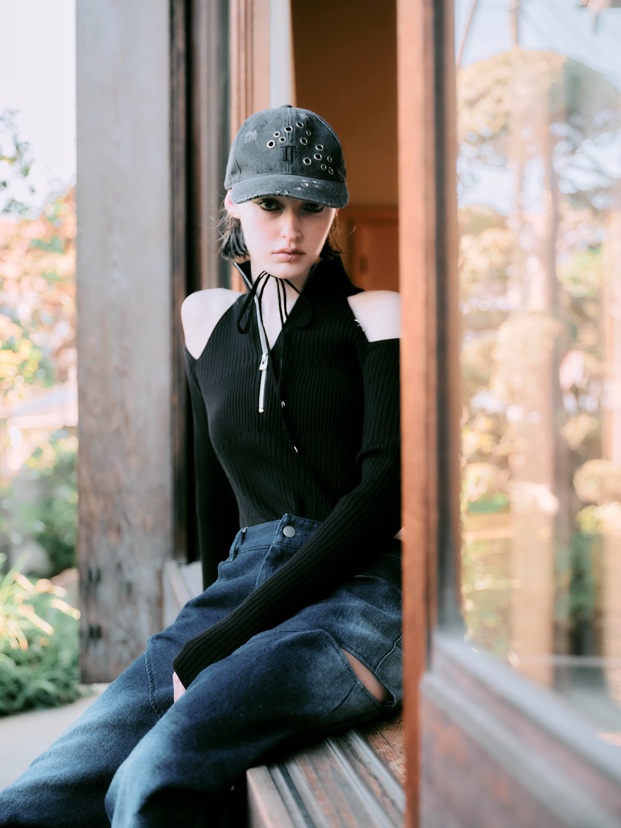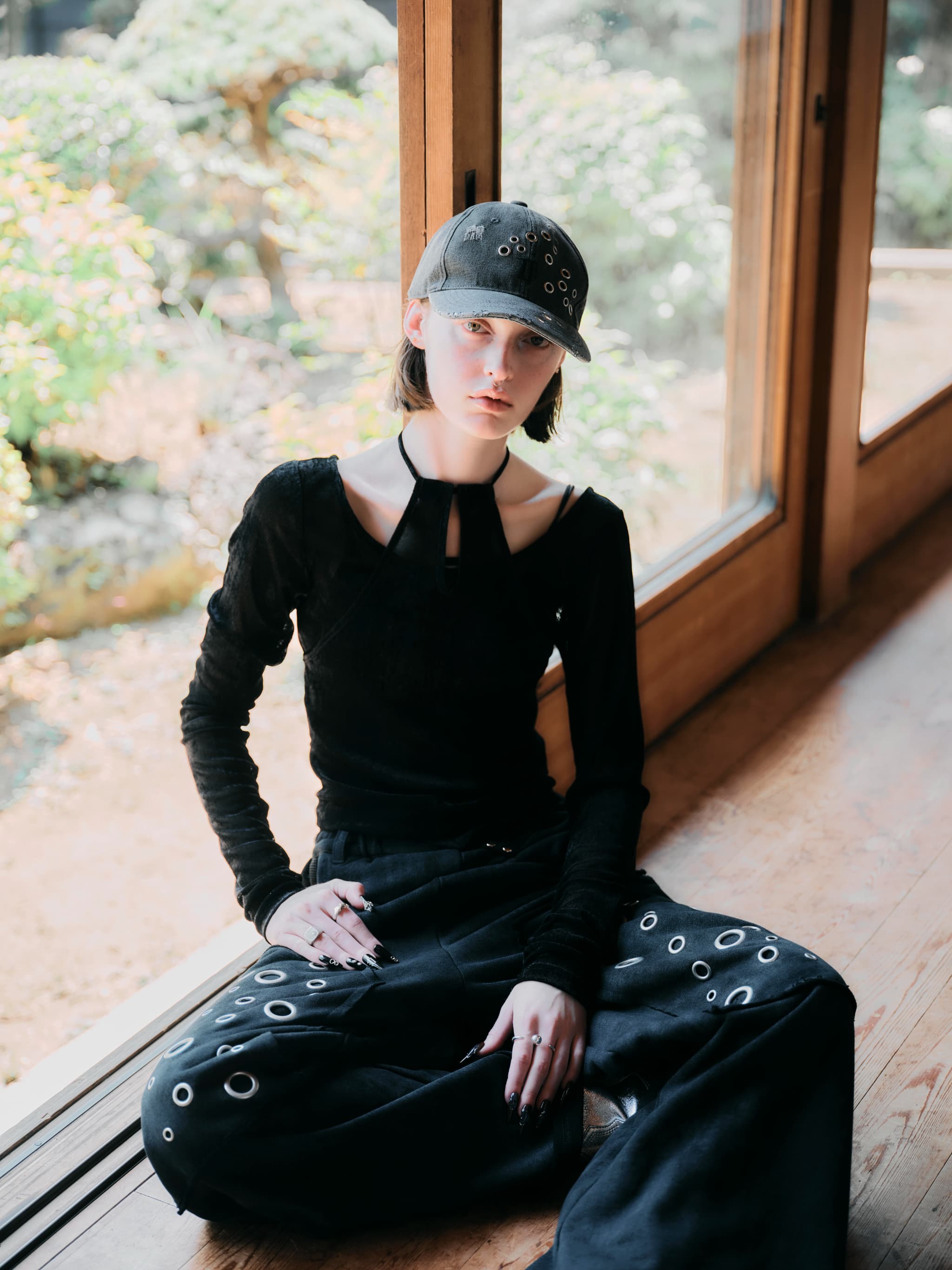 CONCEPT EYELET TEE-CHARCOAL GRAY
