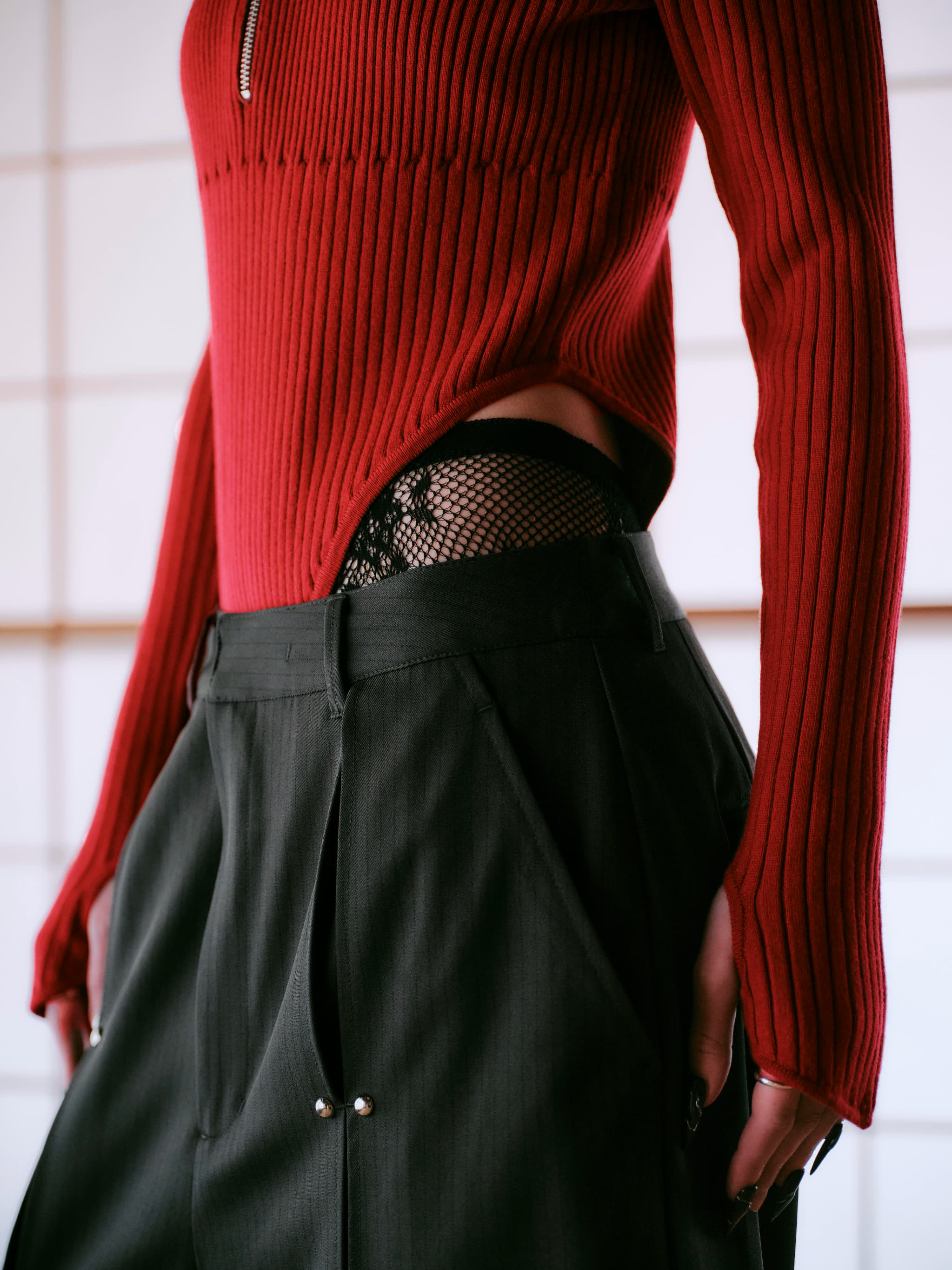 CUT OUT KNIT BODY SUITS-RED