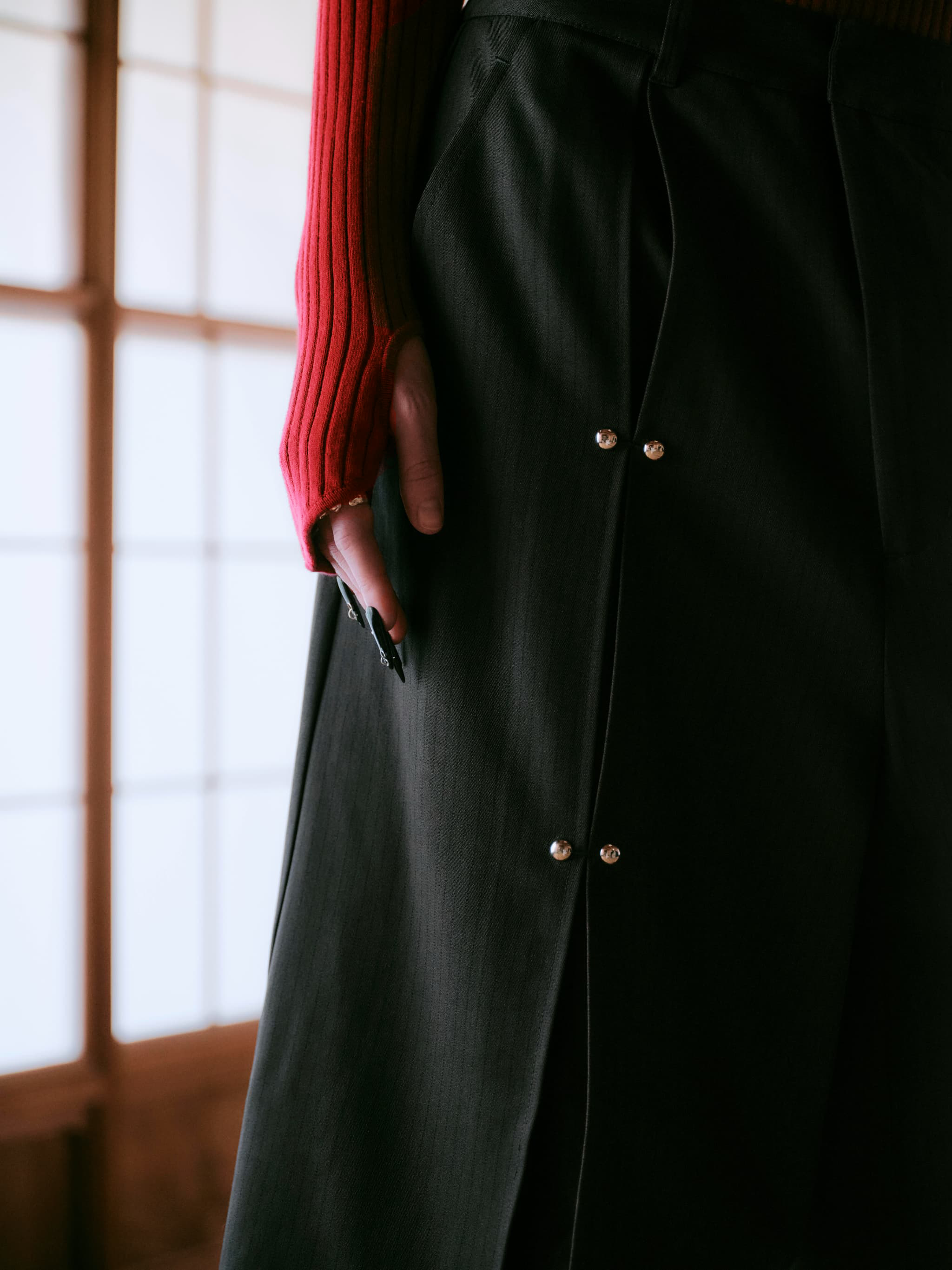 裾はハイレグラインで設計し、ローライズなら骨盤が覗く絶妙なラインに。ハイウエストと合わせれば露出を抑えられ、その日の気分で着こなしを変えられます。