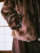 COW PATTERN FUR JACKET-BROWN