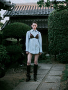 REVERSIBLE BUSTIER SET SHIRT-BLUE