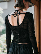 SHEER VELOUR HALTERNECK TOPS - BLACK