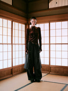 伸縮性と程よい透け感をもつ、シアーベロアを使用。