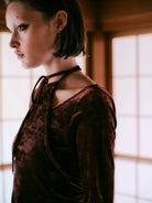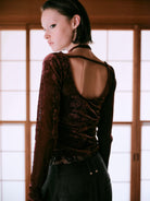 SHEER VELOUR HALTERNECK TOPS - BURGUNDY