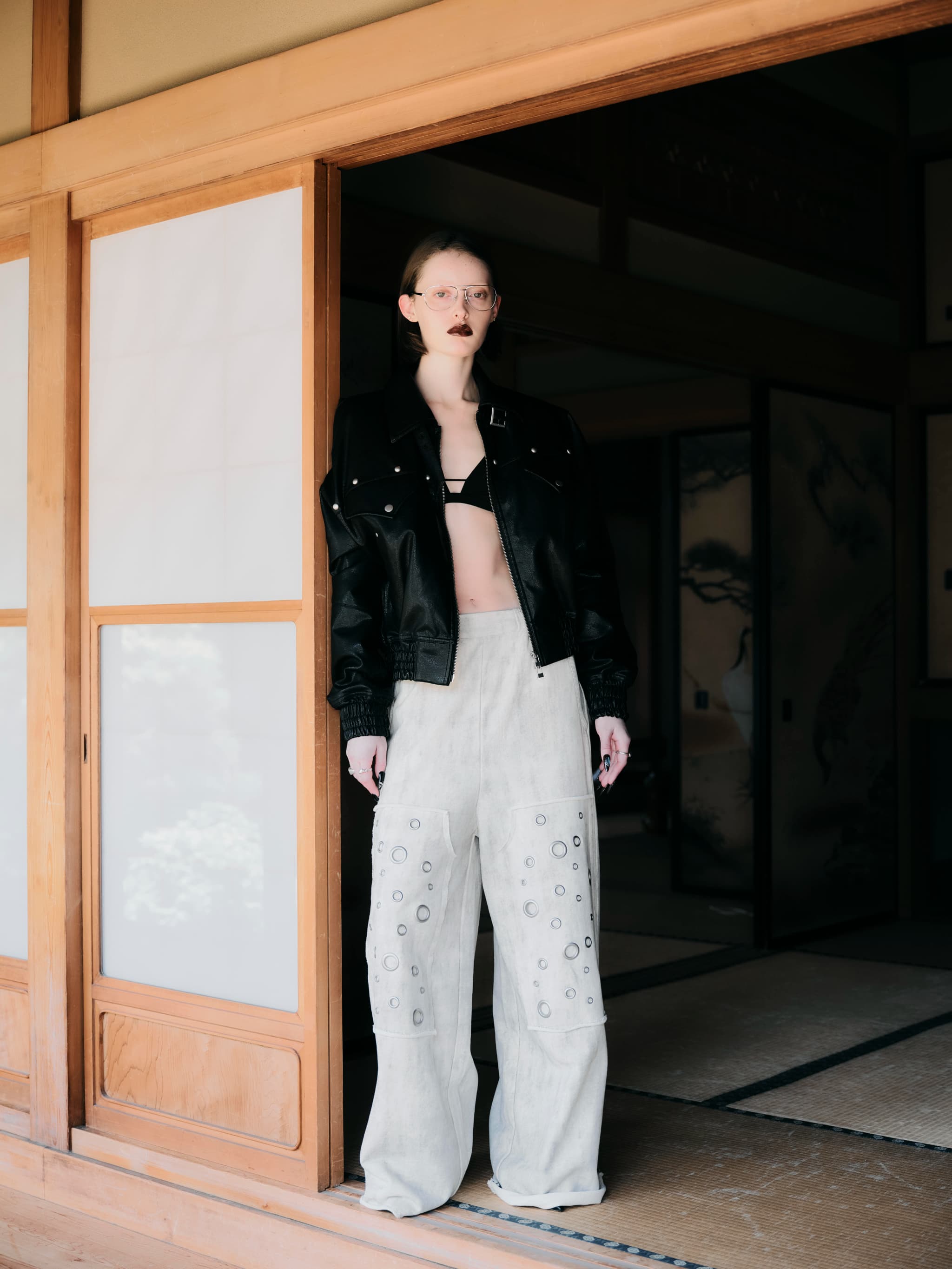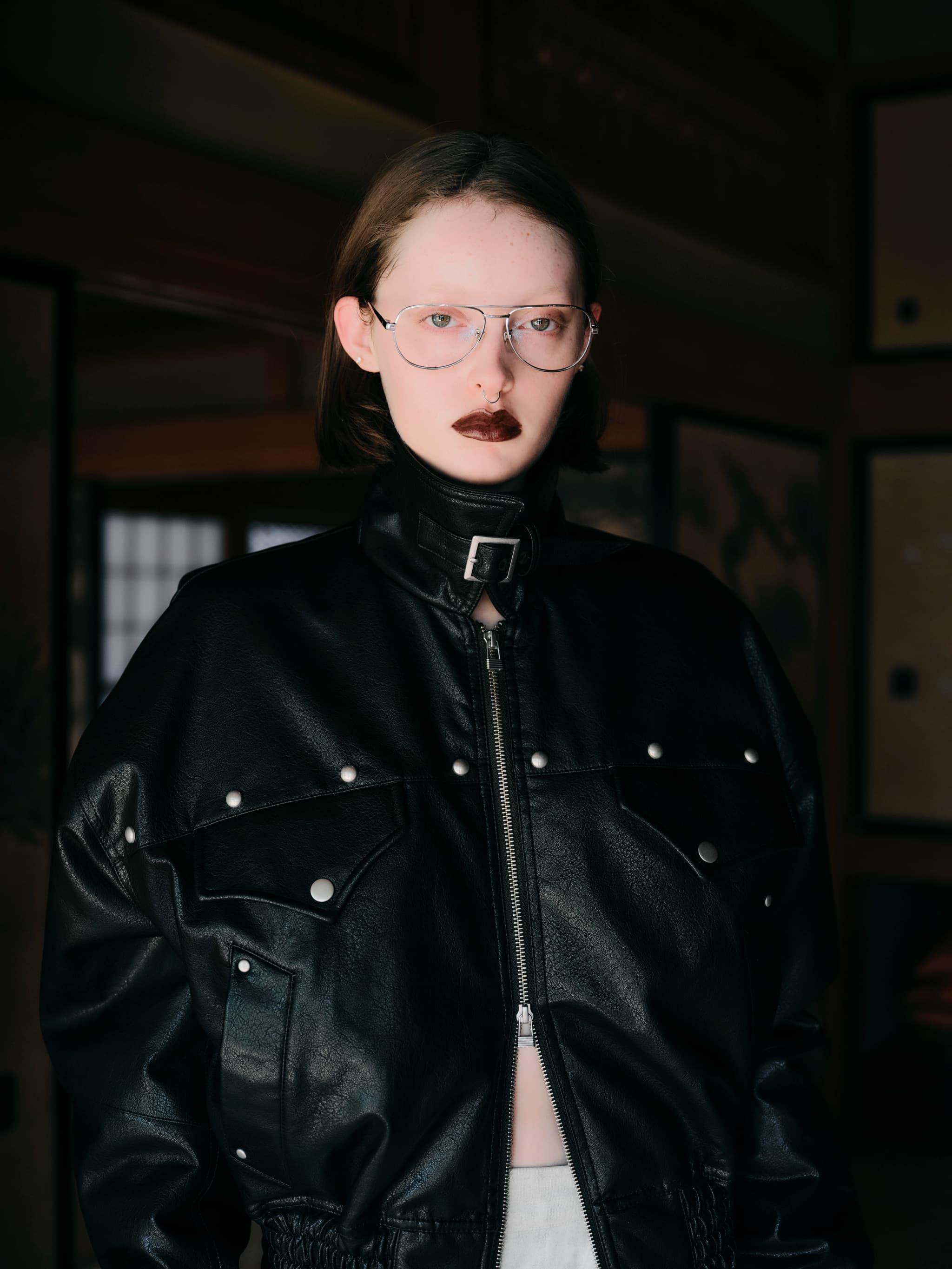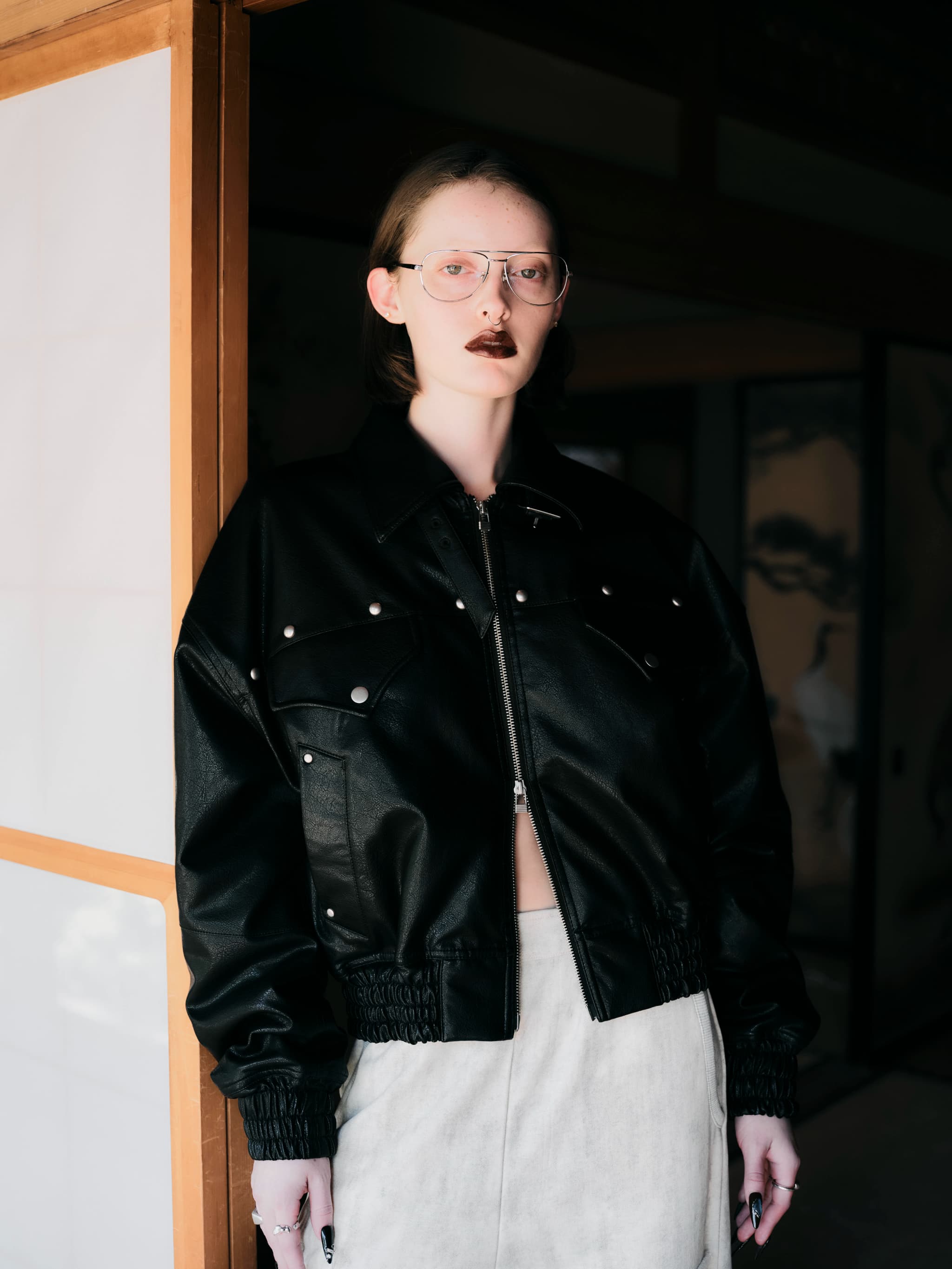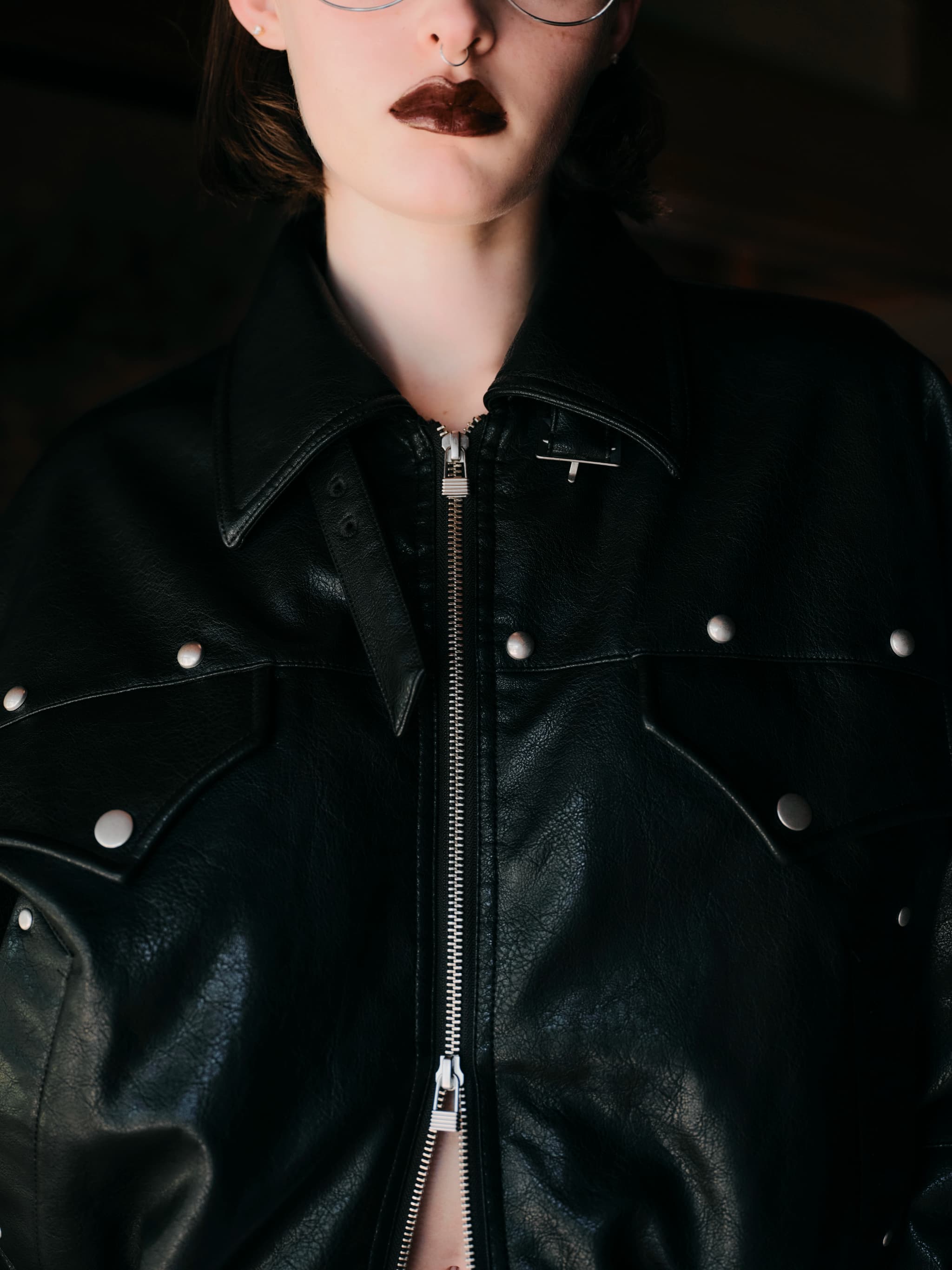FAKE LEATHER FRINGE BOMBER JACKET-BLACK