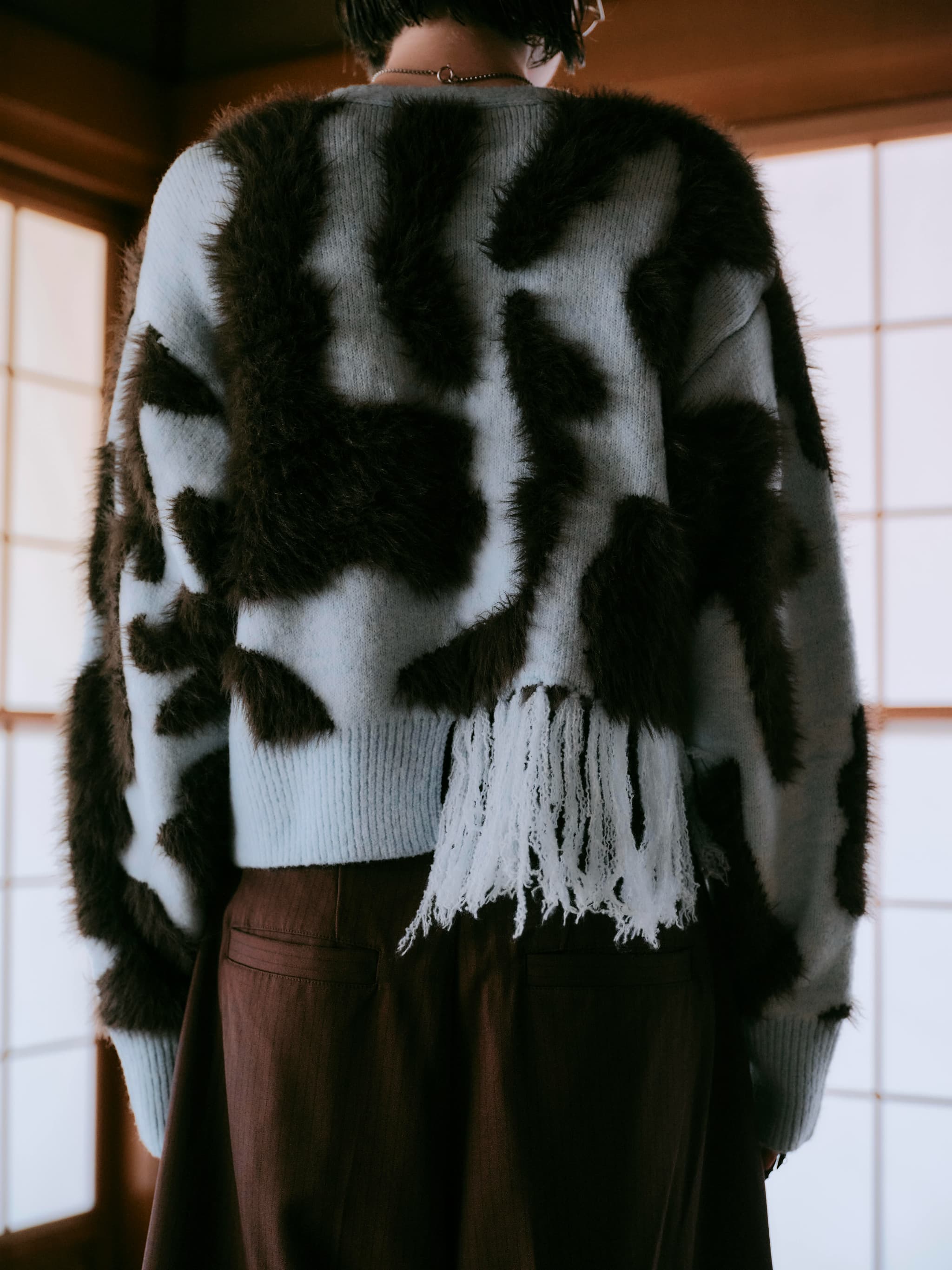 毛足の長い糸と短い糸を組み合わせて編み上げた、オリジナルのジャガードニット。