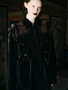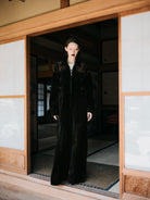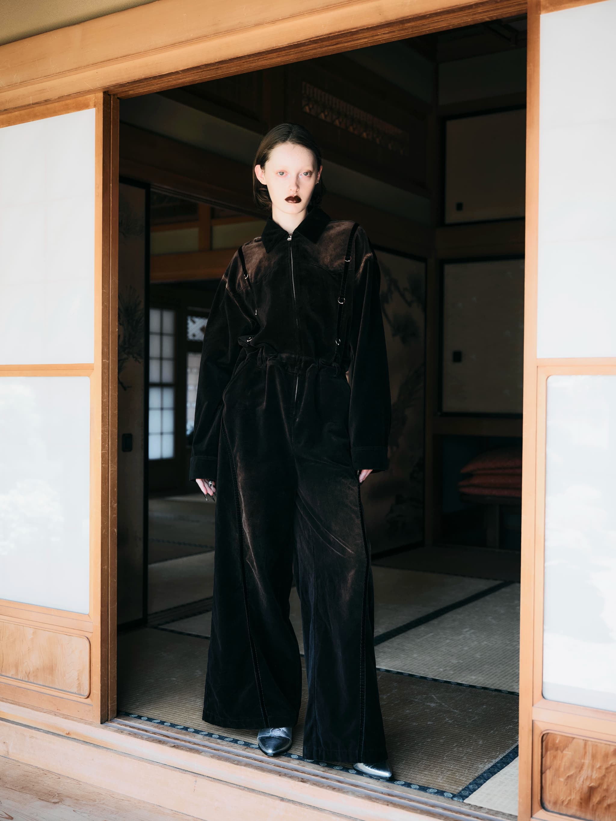 全身を包み込むような存在感を放つ、ベルベット素材のジャンプスーツ。