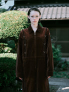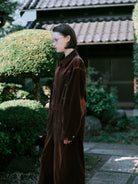 - BROWN:深みのあるブラウンのベルベット生地にブリーチ加工を施しております。落ち着いた光沢が上品な印象を演出します。