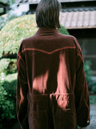 BLEACH OUT VELVET JUMP SUIT-BROWN