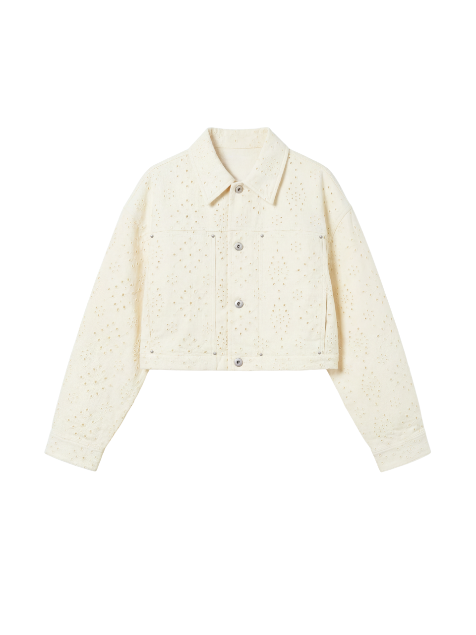 COTTON EYELET EMBROIDERY JACKET-IVORY
