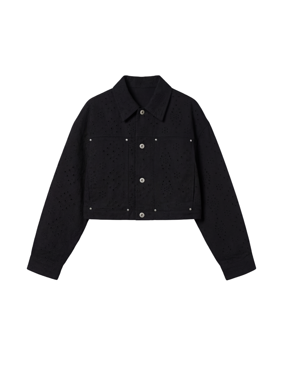 COTTON EYELET EMBROIDERY JACKET-BLACK
