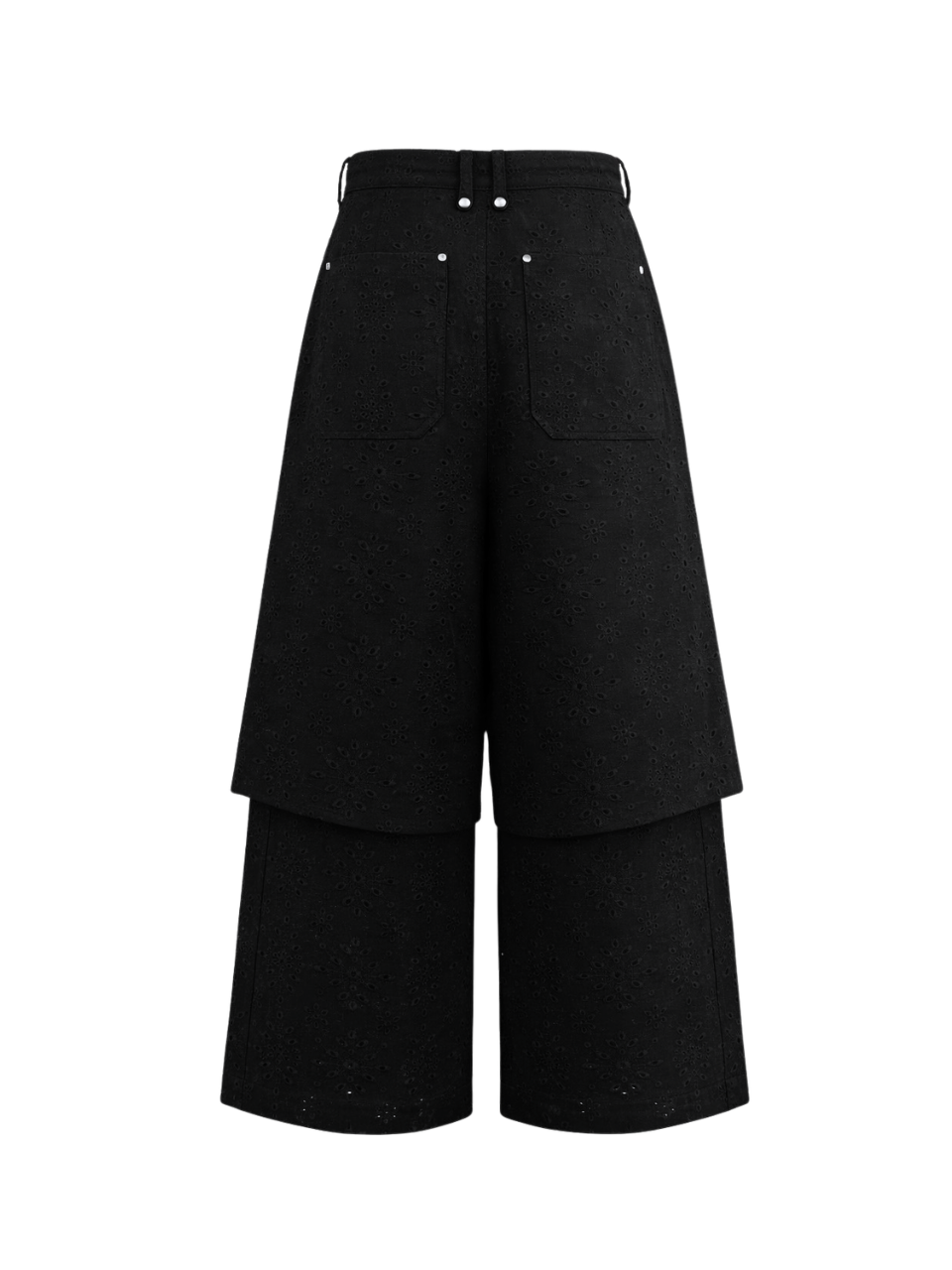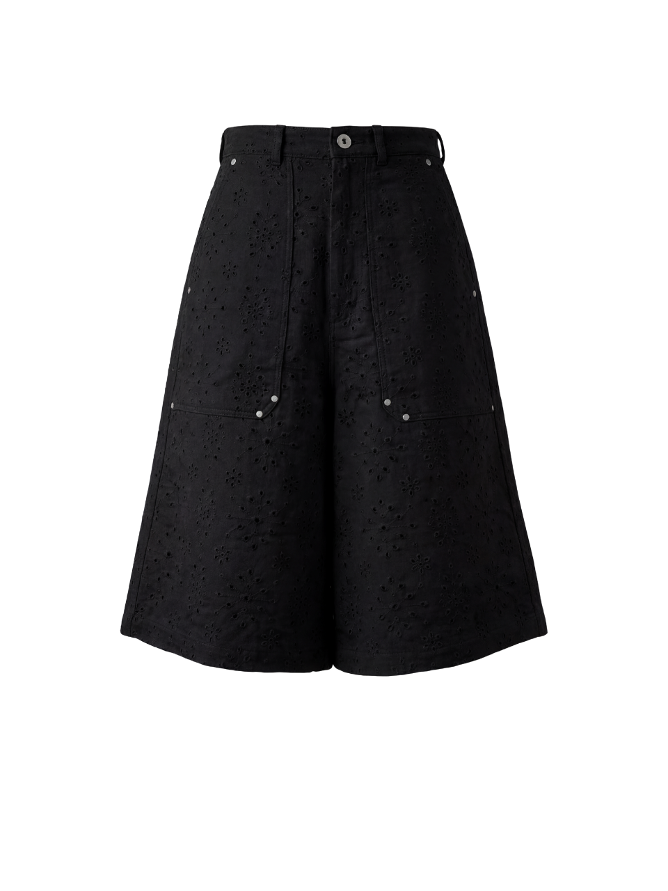 COTTON EYELET EMBROIDERY 2WAY PANTS-BLACK