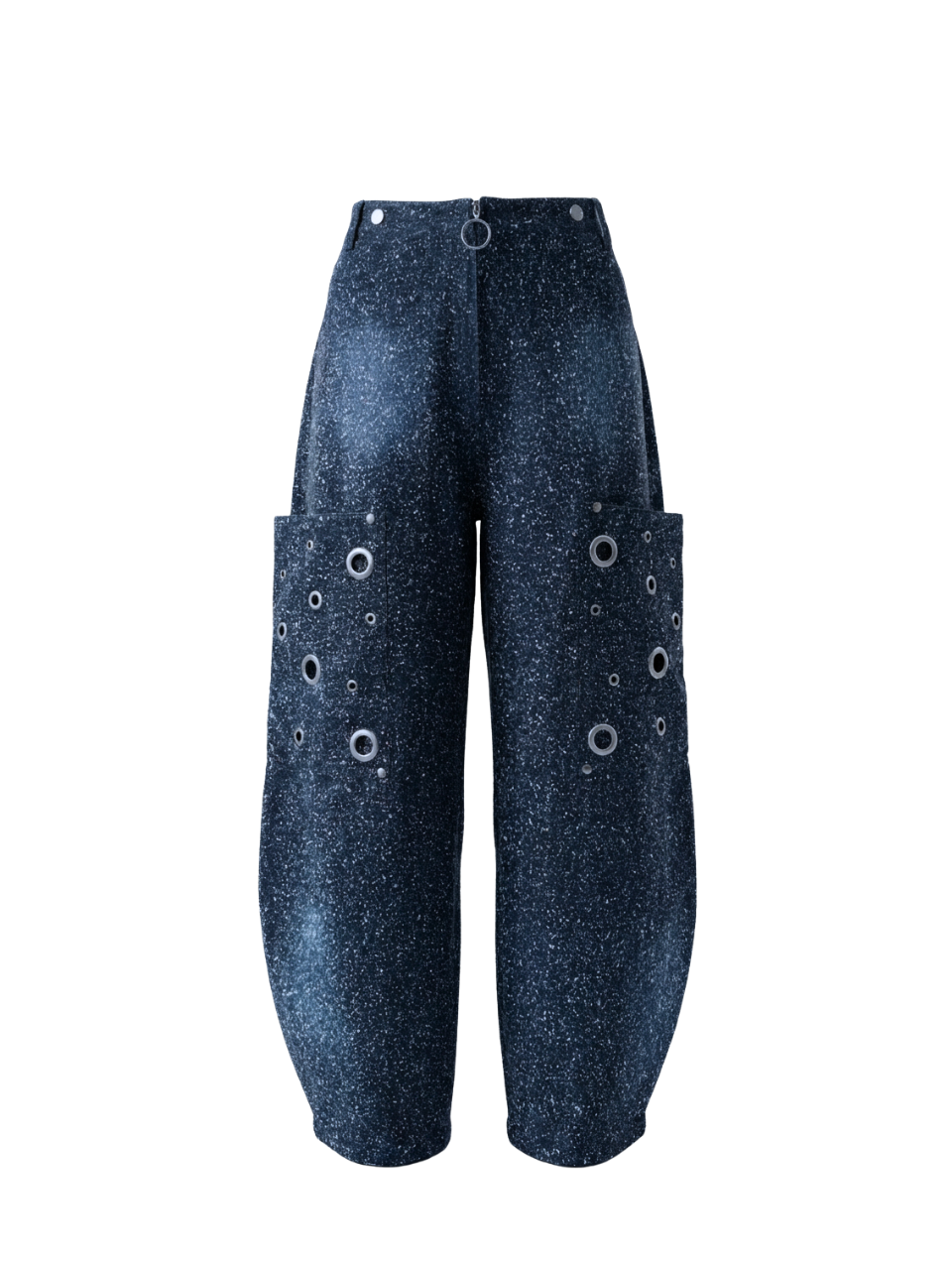 NEEDLE PUNCH EYELET CURVE DENIM-BLUE