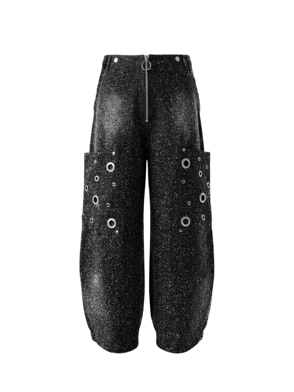 【RE-STOCK】EYELET DESIGN SWEATPANTS-CHARCOAL GRAY