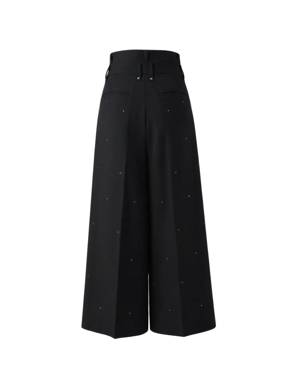 RHINESTONE DOUBLE WAIST SLACKS-BLACK