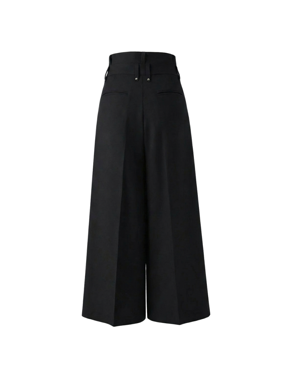 DOUBLE WAIST WIDE SLACKS-BLACK