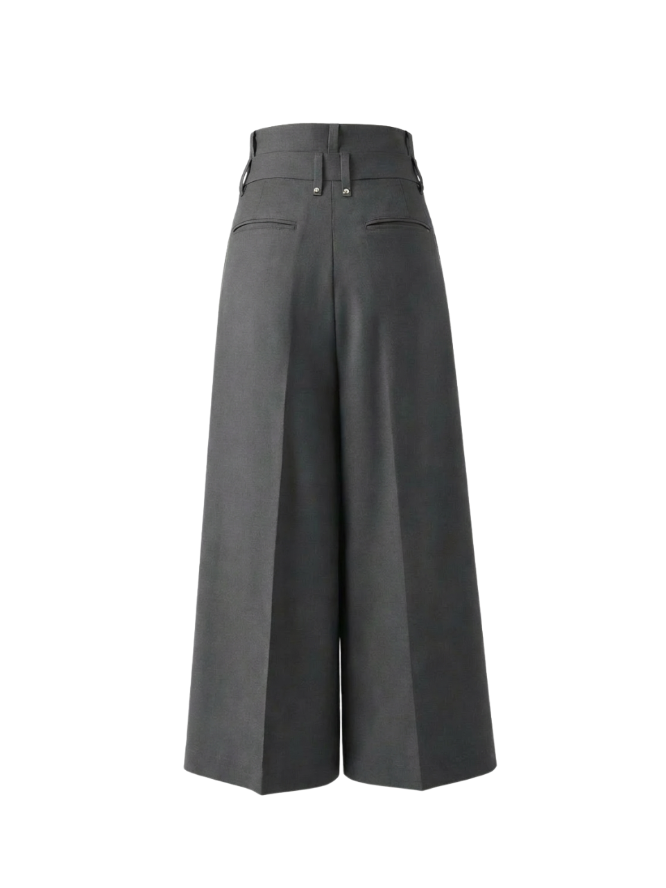 DOUBLE WAIST WIDE SLACKS-GRAY