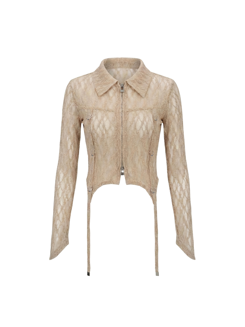 SHEER LACE ZIP-UP TOP-BEIGE