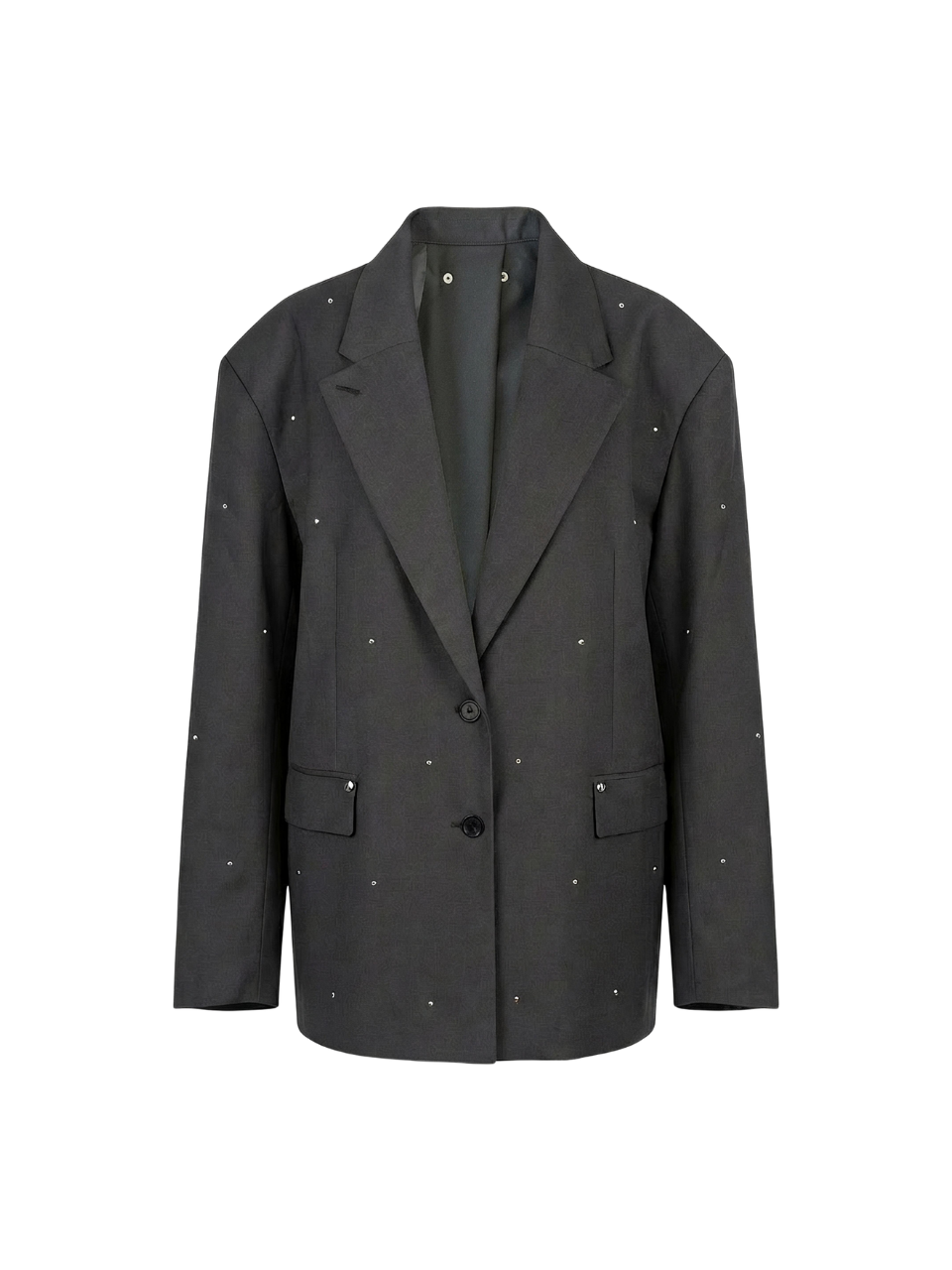 BACK OPEN RHINESTONE TAILORED JACKET-GRAY