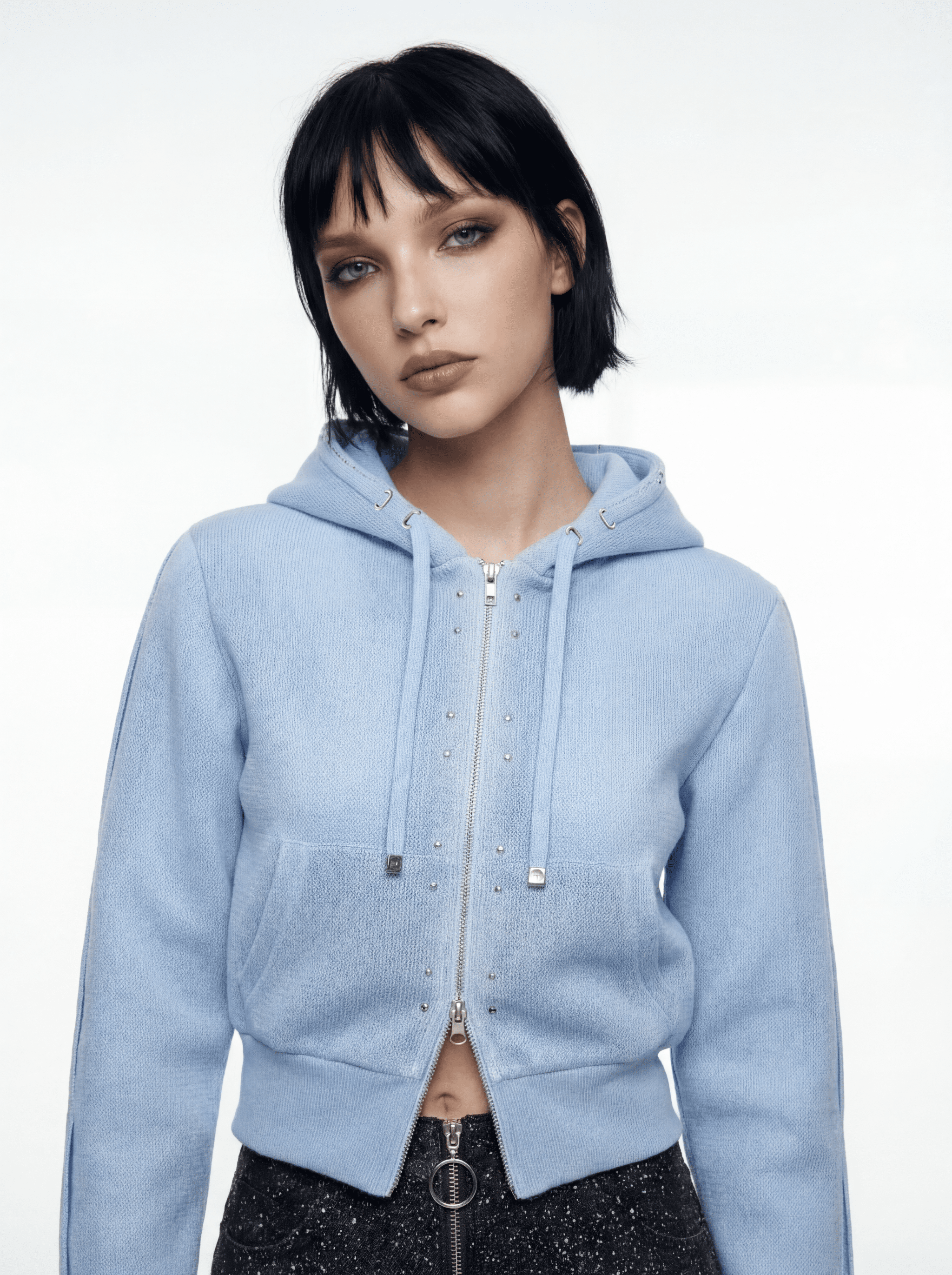 3D MESH ZIP UP HOODIE-SAX
