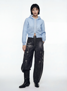 立体的なダンボールメッシュ素材を使用した、存在感のあるジップアップフーディー。